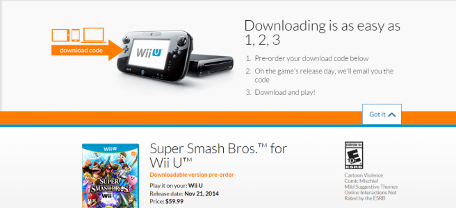 Nintendo’s North American website seems to have been updated recently with a new feature. Wii U and 3DS owners can now pre-order the digital versions of various games, including Super Smash Bros. for Wii U.
