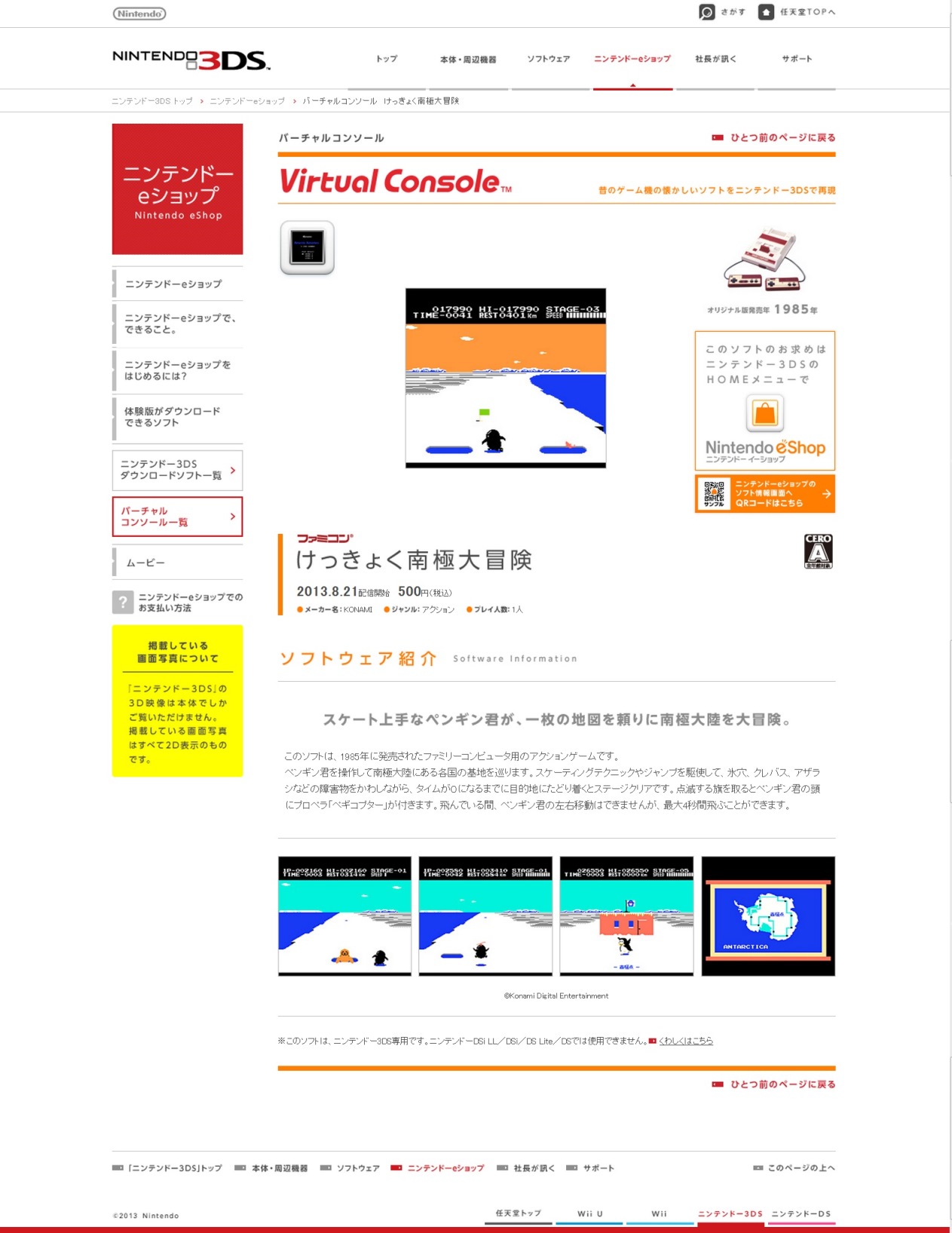 Antarctic Adventure hitting the Japanese 3DS VC on August 21