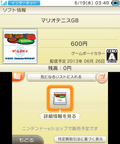 Next week’s Japanese 3DS VC releases are highlighted by the Game Boy Color version of Mario Tennis. It’s due out on June 26 for 600 yen.