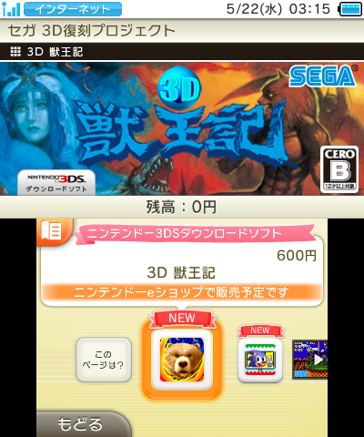 Other titles in the “3D” series including 3D Sonic the Hedgehog, 3D Space Harrier, and 3D Super Hang-On. All of these should be making their way overseas in due time.