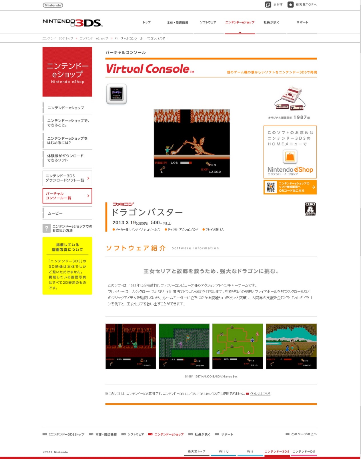 Dragon Buster will be hitting the Japanese eShop as a Famicom download on March 20 for 500 yen. Screenshots of the game can be found above.