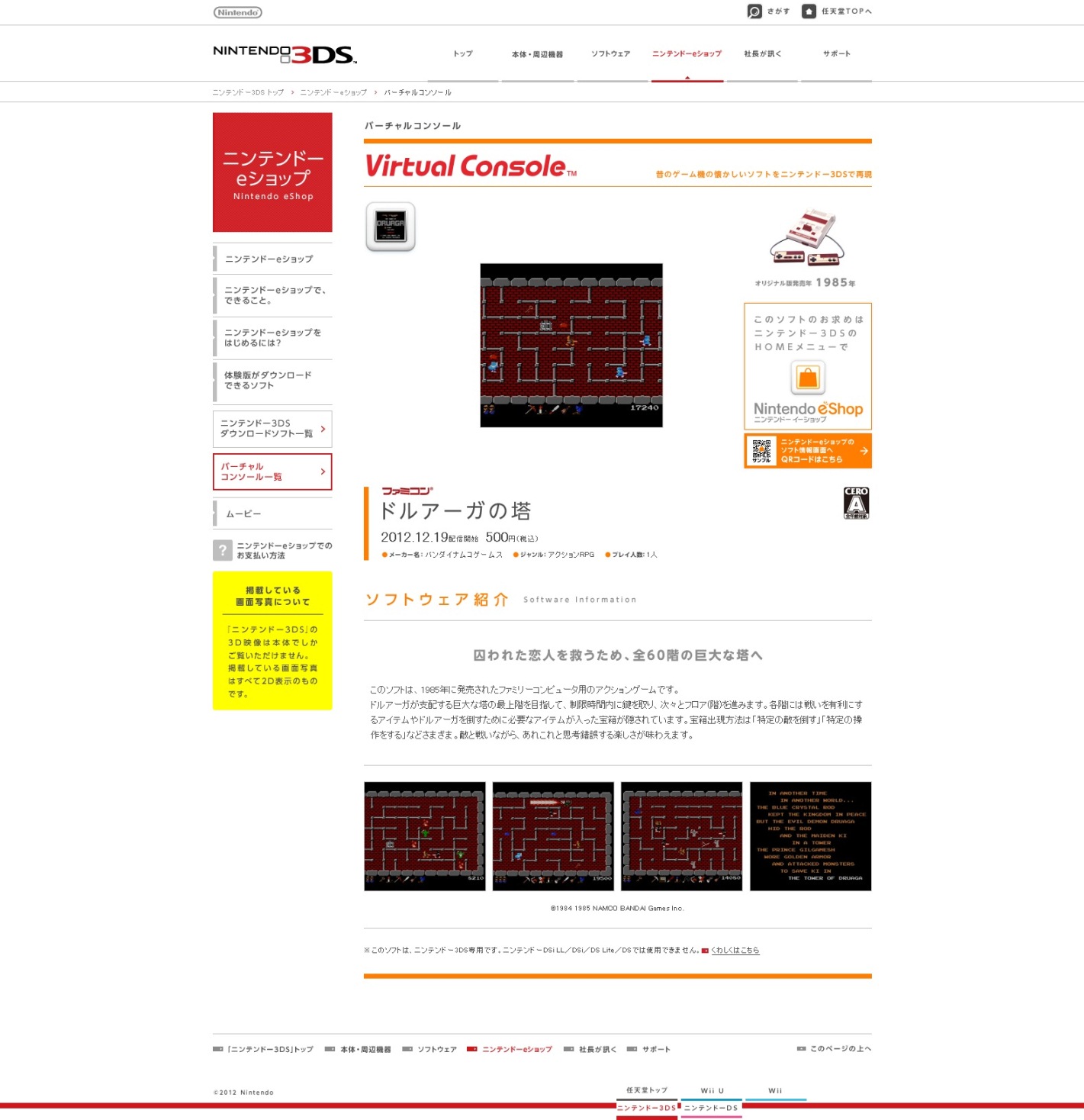 The Tower of Druaga will be hitting the Japanese eShop as a Famicom download on December 19 for 500 yen. Screenshots of the game can be found above.