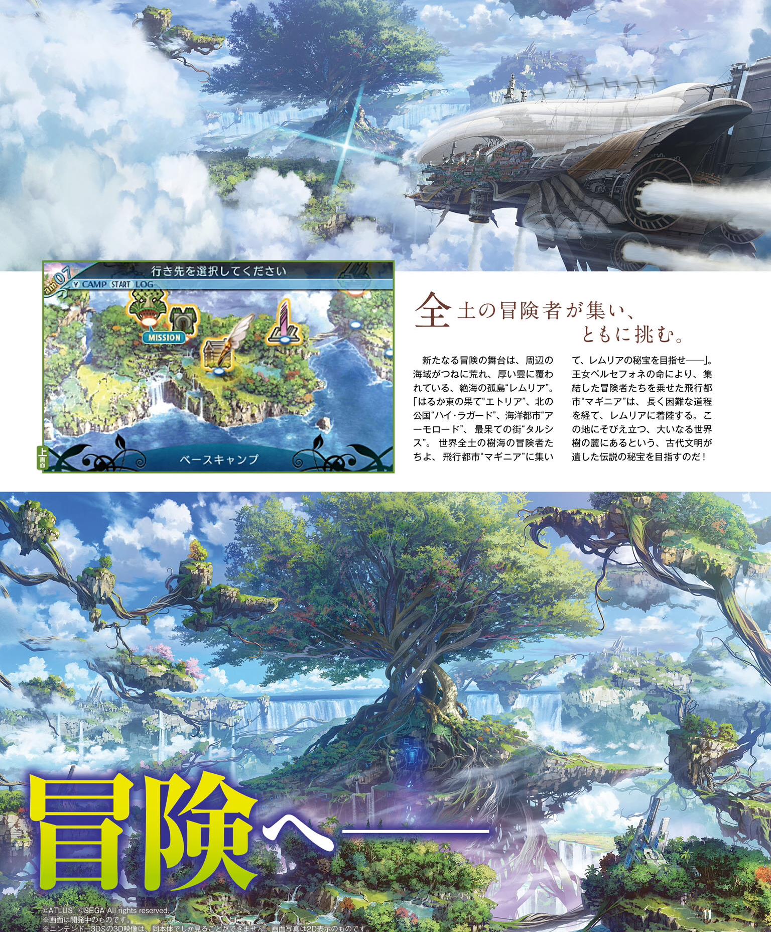 Etrian Odyssey V was positioned as a culmination title created under the direction of “challenging new things.” On the other hand, however, Komori felt that there were many fans who expected a direction that compiled the best parts of previous entries in the series. So, they decided to make Etrian Odyssey X as another culmination title. Lemuria, the setting of Etrian Odyssey X, is a land isolated from other continents. A sea of trees familiar to adventurers of previous Etrian Odyssey games is spread out around the Yggdrasil Tree at its center. However, caution is necessary as knowledge of previous dungeons may backfire. Elements that will put a grin on the faces of experienced Etrian Odyssey players are also being prepared.