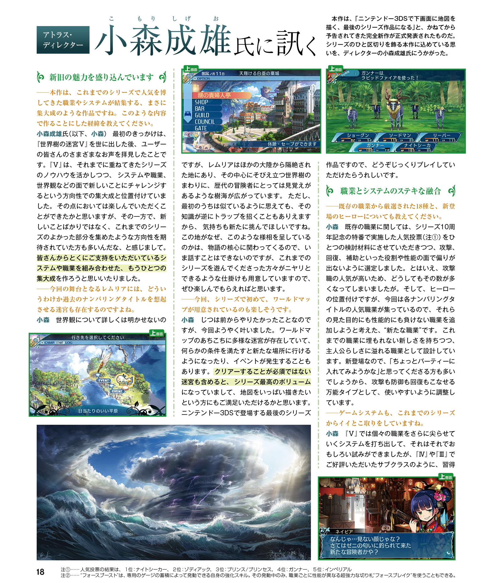 The latest issue of Weekly Famitsu had an interview with Etrian Odyssey X director Shigeo Komori, who shares more tidbits about Etrian Odyssey X. This information is courtesy from Gemastu.