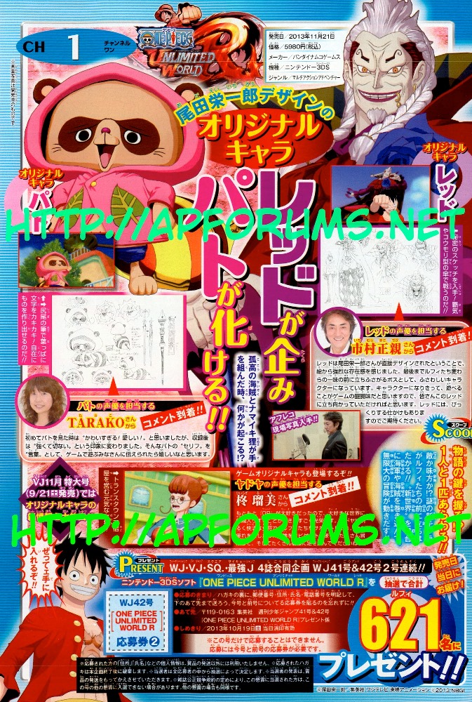 The latest scan for One Piece: Unlimited World Red reveals that Eiichiro Oda, creator of the original manga, is making original characters for the 3DS game.