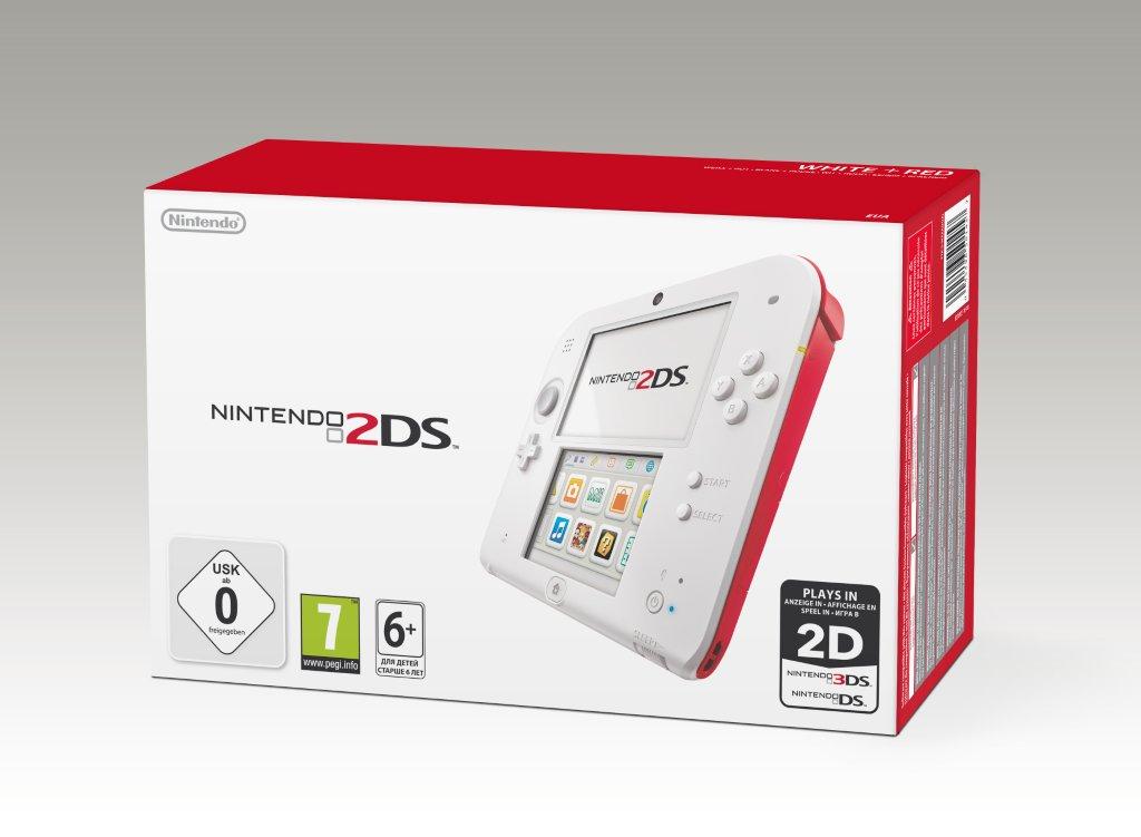 The 2DS will launch in Europe on October 12, Nintendo has announced. It will come in two color combinations: White + Red and Black + Blue. Red or blue carrying cases can be purchased separately.