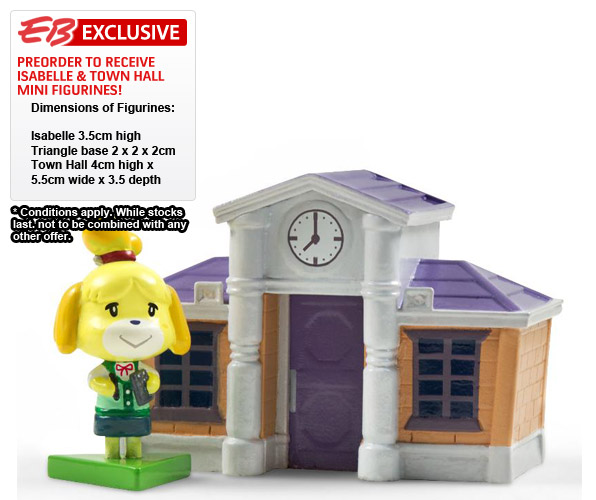 EB Games Australia is handing out a little bonus with Animal Crossing: New Leaf pre-orders. If you reserve the game, you’ll receive Isabelle and town hall mini figurines. It’s pretty neat – it makes me wish for something similar here!