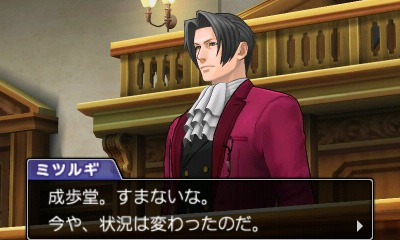 Capcom updated the Japanese Phoenix Wright: Ace Attorney – Dual Destinies website today with new screenshots and details. We get a first look at Miles Edgeworth and Trucy in the game, as well as more information about how the story unfolds.