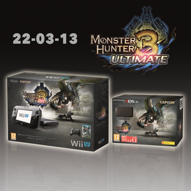 Nintendo and Capcom have teamed up for two Monster Hunter 3 Ultimate bundles in Europe. Each will include either a Wii U or 3DS and a copy of Ultimate on their respective platforms. The Circle Pad Pro will also be available on the same launch day.