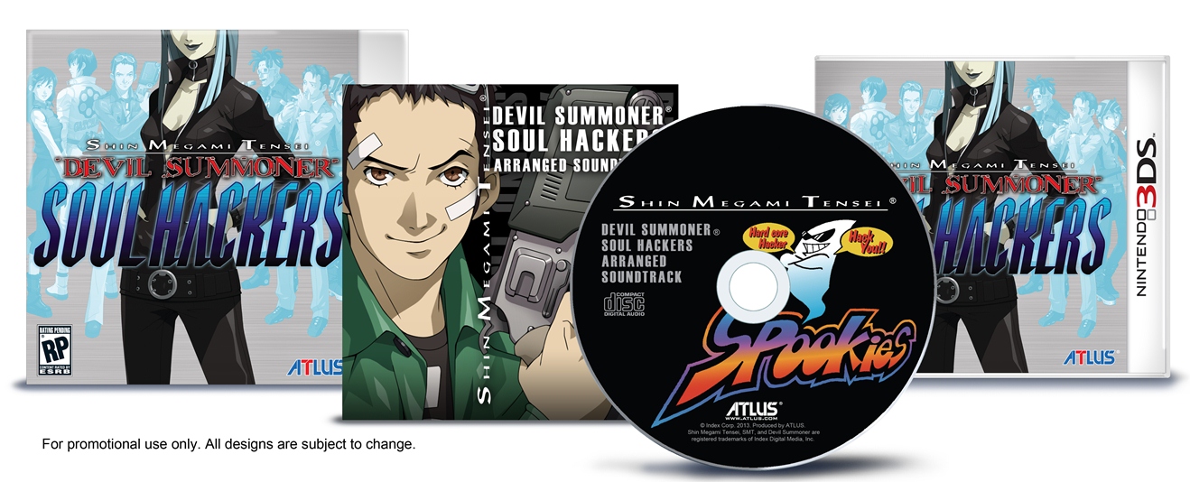 Those who pre-order Devil Summoner: Soul Hackers or pick up an early launch copy will be provided with a special, limited edition boxed set of the game. Atlus will be bundling together a copy of Soul Hackers and a soundtrack CD. According to the publisher, the CD features newly arranged versions of musical pieces found in the title. The top six tracks were voted on by Japanese fans.