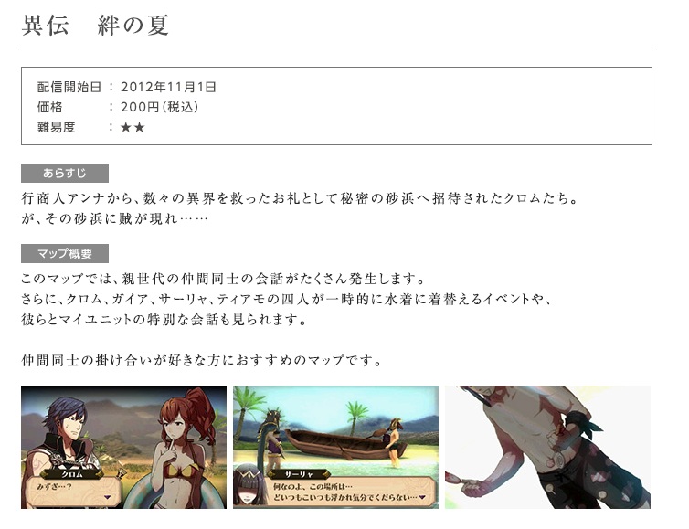 Next week’s Fire Emblem: Awakening DLC release in Japan is titled “Another Story: Summer of Bonds”. It’s due out on November 1.
