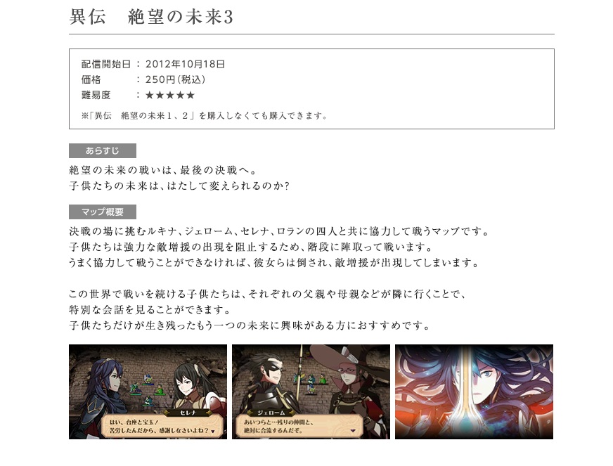 New Fire Emblem: Awakening downloadable content went live in Japan today that continued the “Another Story: Future of Despair” arc. The third piece is scheduled for release next Thursday.