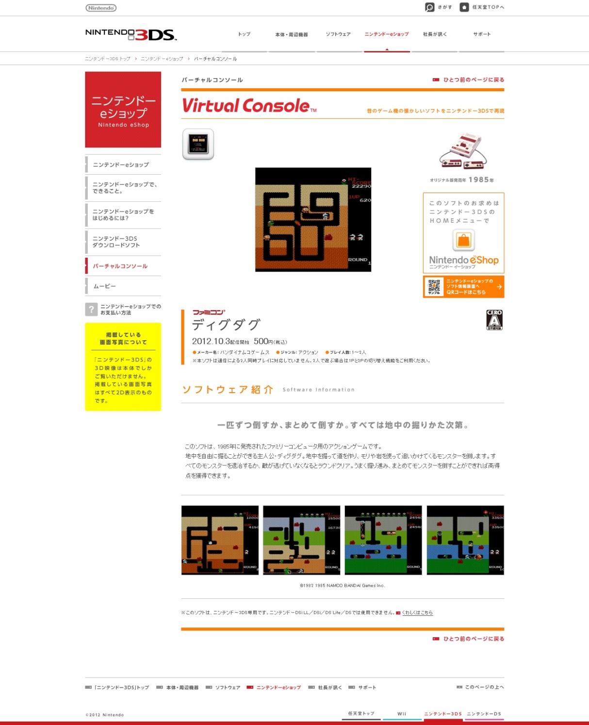 Dig Dug will be hitting the Japanese eShop as a Famicom download on October 3 for 500 yen. Screenshots of the game can be found above.