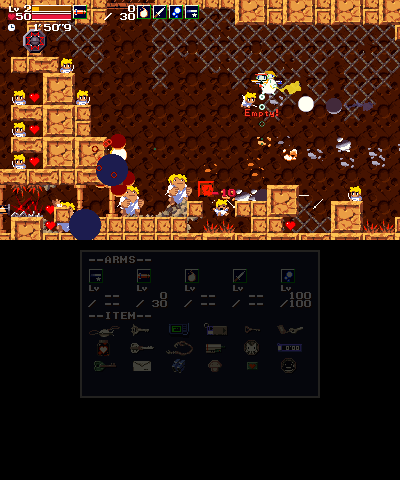 The eShop game supports multi-layered 3D depth, 4:3 and widescreen views, two button configurations, and more challenges – Nemesis Challenge, Boss Rush, Curly Story, Hell Time Attack and Wind Fortress.