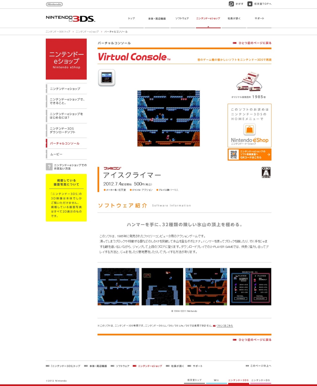 Ice Climber will be hitting the Japanese eShop as a Famicom download on July 4 for 500 yen. Screenshots of the game can be found above.