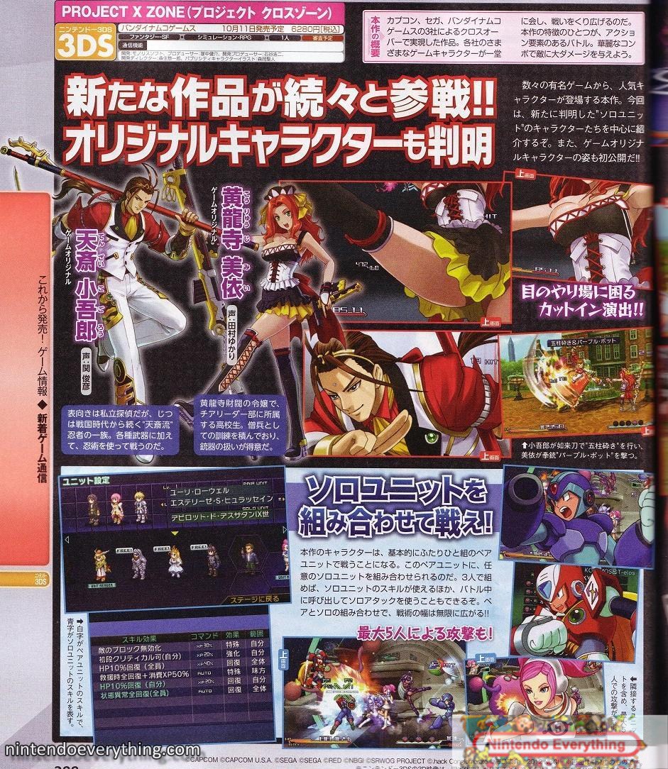 A few small scans of Project X Zone have surfaced from Famitsu. The images highlight new characters confirmed in the magazine this week.