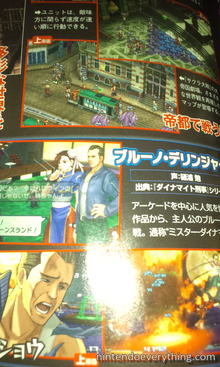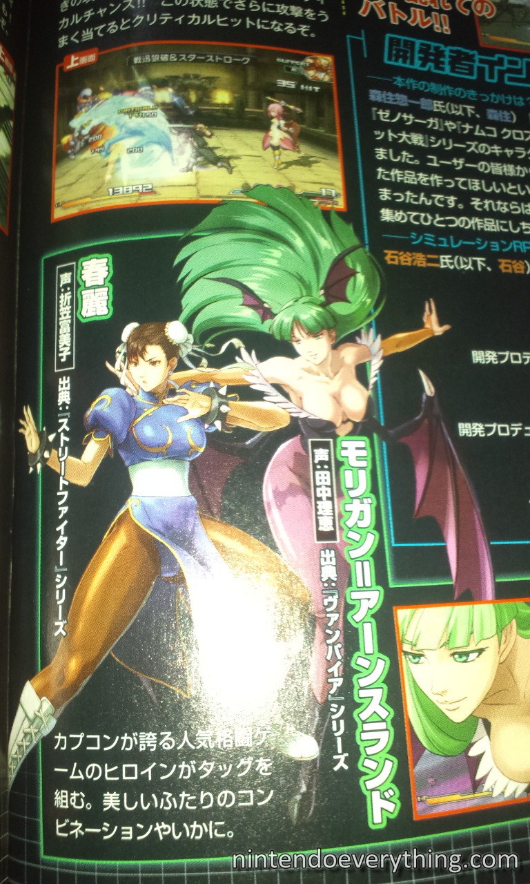 A new batch of characters for Project X Zone has been announced in the latest issue of Famitsu. Street Fighter’s Chun Li, Darkstalkers’ Morrigan, Super Robot Taisen OG Saga: Endless Frontier’s Haken Browning and Kaguya Nanbu, Sakura Wars’ Erica and Gemini, Dynamite Deka’s Bruno, and Valkyrie no Densetsu’s Valkyrie will be included on the roster.
