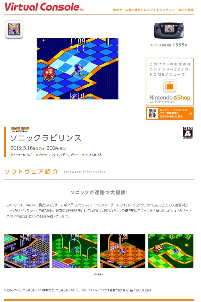 Sonic Labyrinth will be hitting the Japanese eShop as a Game Gear download on May 16 for 300 yen. Screenshots of the game can be found above.