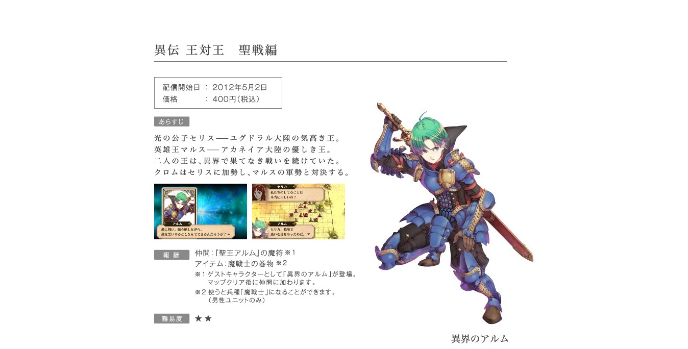 Players will be able to add Micaiah from Fire Emblem: Radiant Dawn to their party in “The Magic of Remembrance #3”. Ike will appear in this chapter as well. “King Vs. King: The Holy War Chapter” provides access to Alm from Fire Emblem Gaiden.