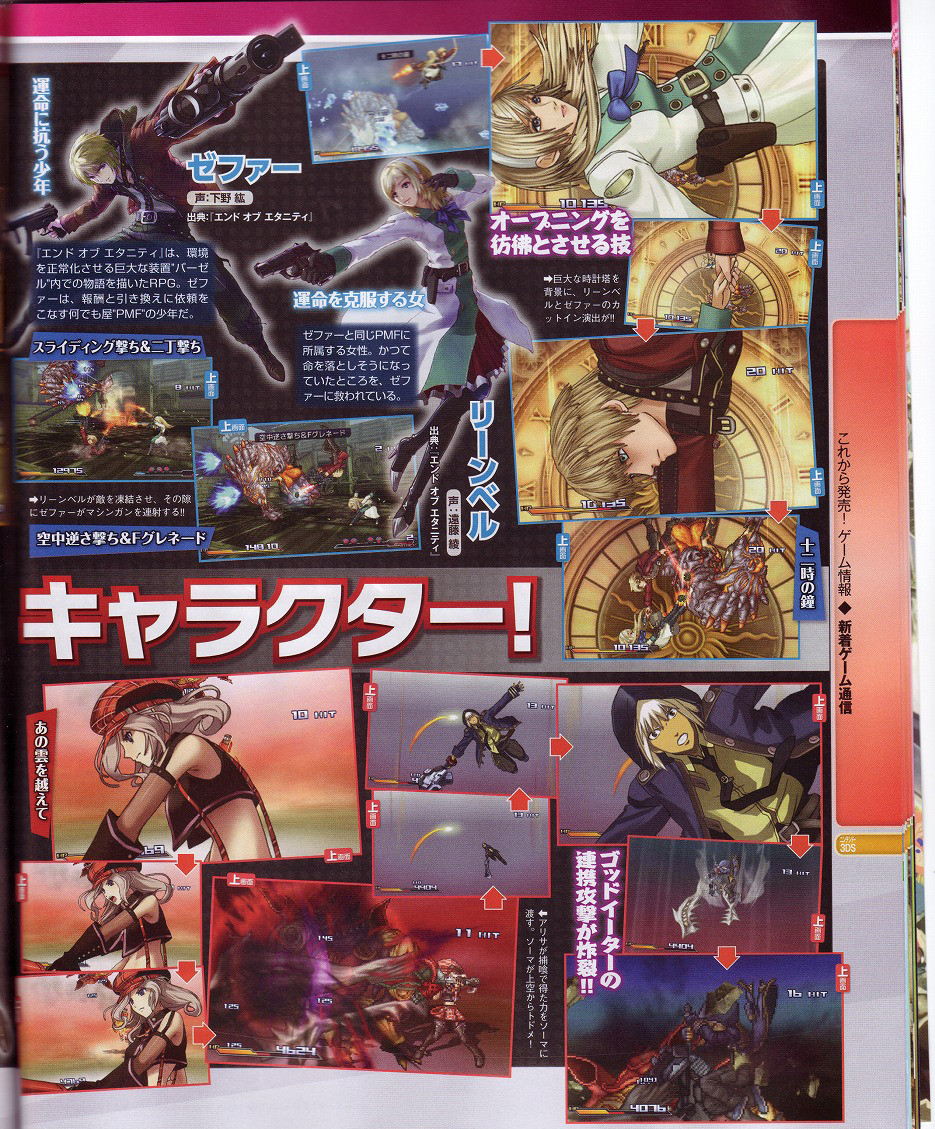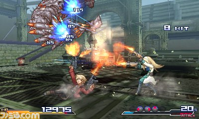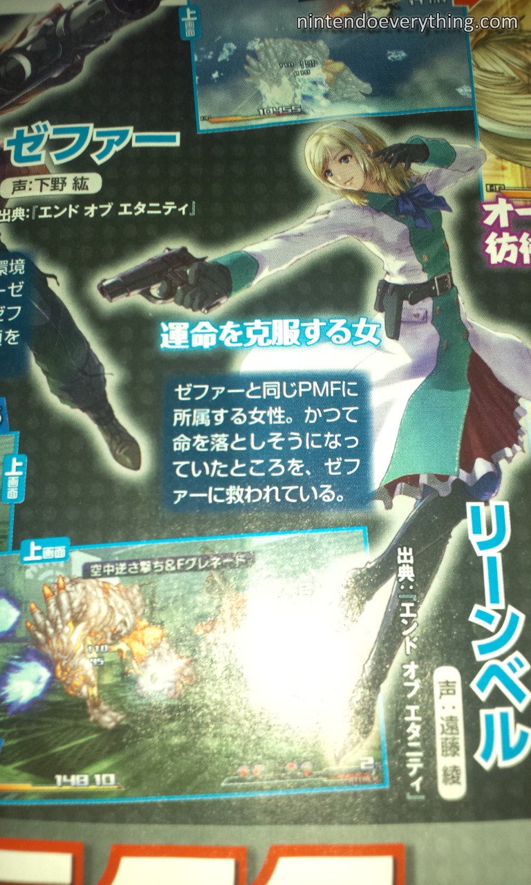 Famitsu has posted some shots of Project X Zone’s newly confirmed characters. Earlier this week, we heard that God Eater’s Alisa and Soma, Dead Rising’s Frank West, Darkstalkers’ Lei-Lei, and Resonance of Fate’s Zephyr and Leanne will be included in the roster.