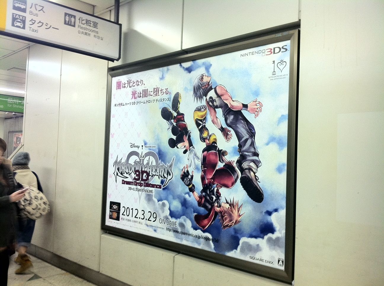 Square Enix has kicked off advertising for Kingdom Hearts 3D in Japan. Various promotional material can be found in the Shibuya and Ikebukuro stations as well as at Sofmap Akihabara and the Yamanote line.