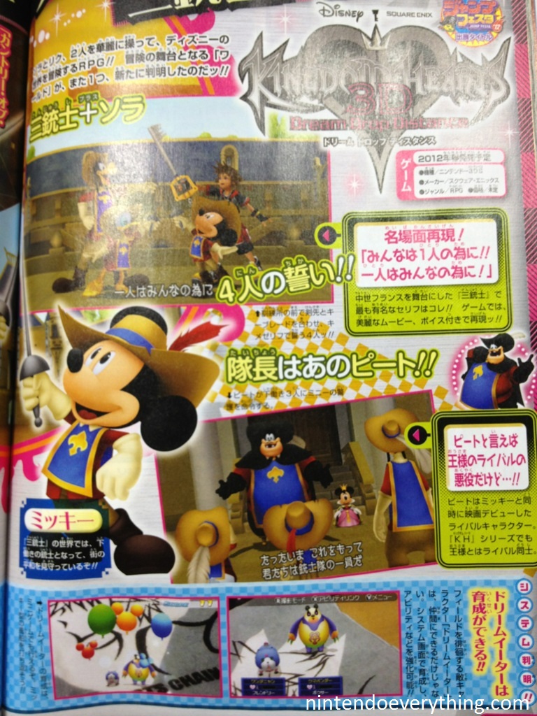 The latest issue of V-Jump has revealed new Kingdom Hearts: Dream Drop Distance details and screenshots. According to the magazine, the Three Musketeers world will be featured in the game. Additionally, Joshua and Beat from The World Ends with You will be making an appearance.