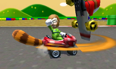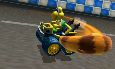 “Fans of the Tanooki power-up will be glad to hear that the Super Leaf makes an appearance in this latest instalment giving you both offensive and defensive abilities. Use your Tanooki tail to both protect you from incoming shells and to whip opponents off the track.”