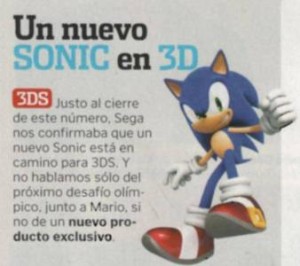 Now the latest issue of Nintendo Acción is saying that Sonic is coming to the 3DS, but the magazine didn’t provide concrete details. Only the following blurb was written (roughly translated):