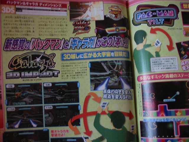 At last year’s E3, Namco Bandai several titles for the 3DS. While the company has detailed several titles for the system, there are a couple of projects left that haven’t been shown – until now. Famitsu has previews of two more Namco Bandai games, Galaga 3D Impact and Pac-Man tilt. Expect information to arrive shortly, and make sure to check out the first scan of the games above.