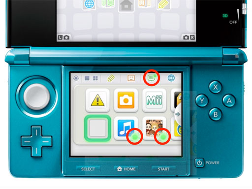 3DS footage – Home menu, StreetPass LED, Friends List, SpotPass LED