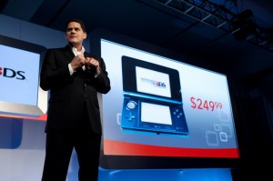 In this photo provided by Nintendo of America, Reggie Fils-Aime, Nintendo of America’s President and COO, shares details about the Nintendo 3DS portable video game system at Skylight Soho in New York on Jan. 19, 2011. The Nintendo 3DS launches in the United States on March 27 at an MSRP of $249.99 and offers realistic, immersive 3D gaming without the need for special glasses. (Matt Peyton/AP for Nintendo of America)