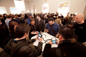 In this photo provided by Nintendo of America, members of the media enjoy hands-on time with upcoming games for the Nintendo 3DS portable game system at Skylight Soho in New York on Jan. 19. The Nintendo 3DS launches in the United States on March 27 and offers realistic, immersive 3D gaming without the need for special glasses. (Matt Peyton/AP for Nintendo of America)