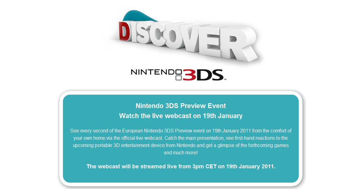 Nintendo of Europe will be holding a live stream of the Nintendo’s 3DS event beginning at 3 PM CET. You can access the stream right here. We haven’t heard of a similar setup in North America, but we’ll let you know if anything changes.