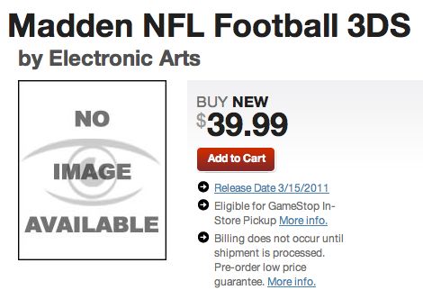 GameStop lists Madden NFL Football 3DS for March 15