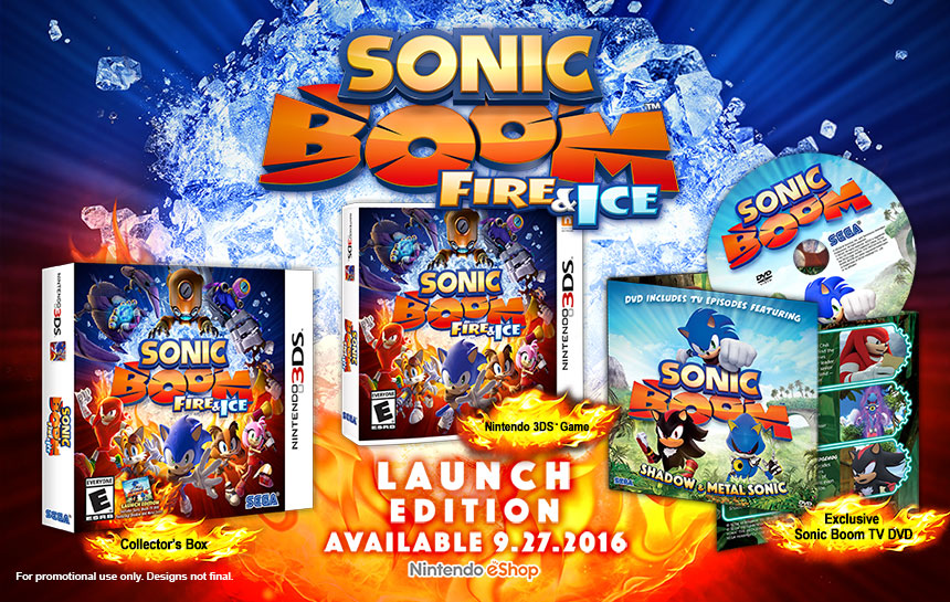 SEGA has pulled back the curtain on the Sonic Boom: Fire & Ice – Launch Edition. Along with a copy of the game, a DVD with three episodes from the animated series will be included: fan-favorite episodes “Chili Dog Day Afternoon” and “It Wasn’t Me, It Was the One-Armed Hedgehog” which features an appearance by Metal Sonic, and the season one finale “It Takes a Village to Defeat a Hedgehog” which includes the infamous Shadow. This is the first time that the content will be available on DVD in North America.