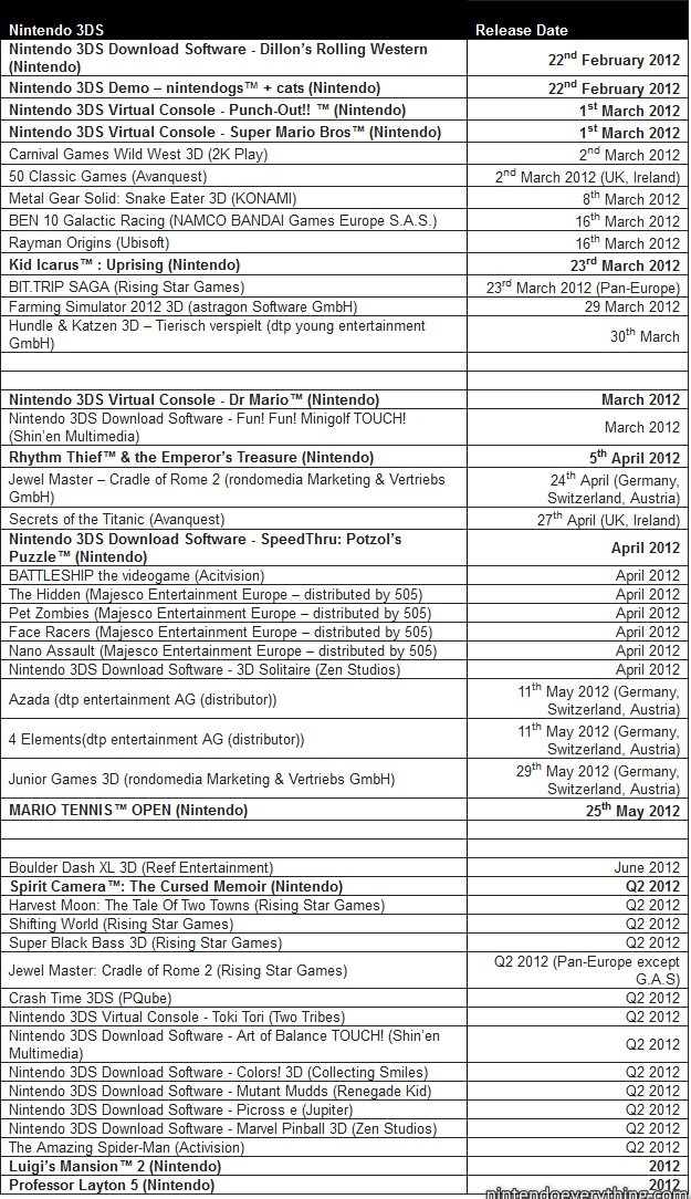 22 February 2012 – Whether you own a Nintendo 3DS™, Nintendo DS™ or Wii™, the recent Nintendo Direct features something for everybody. If you haven’t had a chance to watch it yet then head over to www.nintendo.co.uk/nintendodirect to see Mr Iwata discuss some of the upcoming launches and content that is coming soon from Nintendo. Fans can also keep up to date with exclusive new game information and official Nintendo announcements by following the newly launched official Nintendo of Europe Twitter feed @NintendoEurope