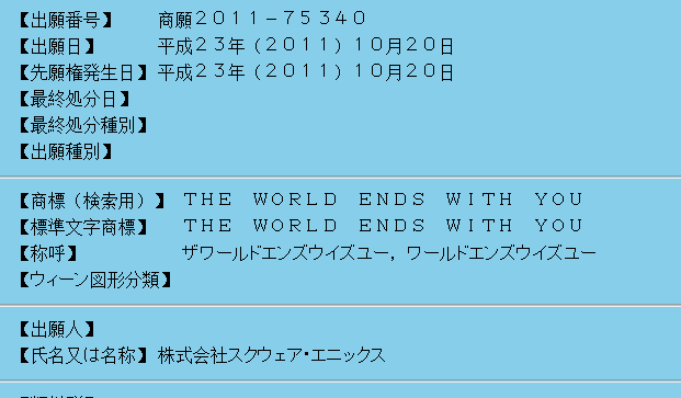 It’s almost hard to believe that The World Ends with You launched for the DS over three years ago. But indeed, that is the case. The game has been out for such a long time that it’s curious how Square Enix registered a new Japanese trademark for the IP very recently.