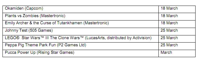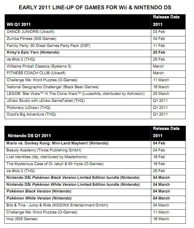 Early 2011 line-up of games for Wii and Nintendo DS (Europe)