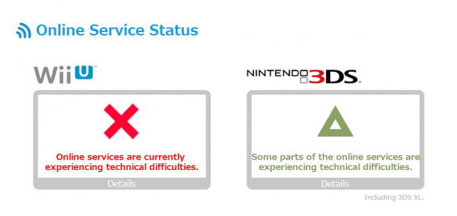 Wii U and 3DS have both been hit with a large amount of issues with regard to online/network services. Users may experience problems accessing the eShop, Miiverse, updates, and online functionality within games.