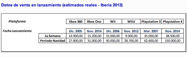 Spain: Install base for gaming systems through the end of 2014, first week comparisons