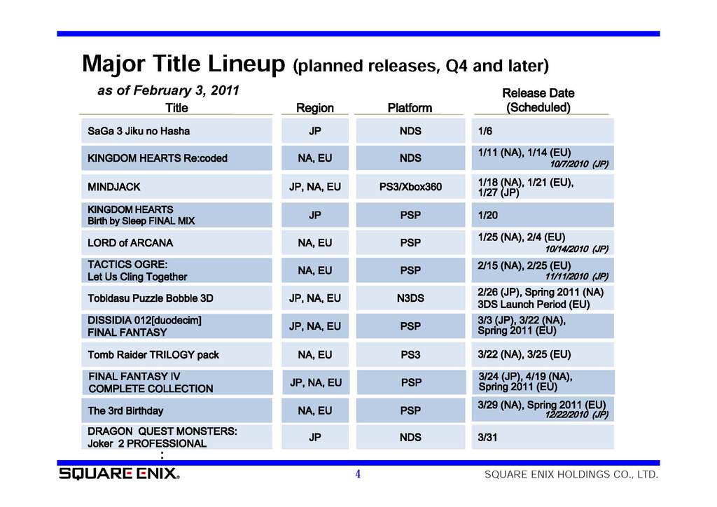 Square-Enix Q3 FY 2010 – upcoming lineup, sales