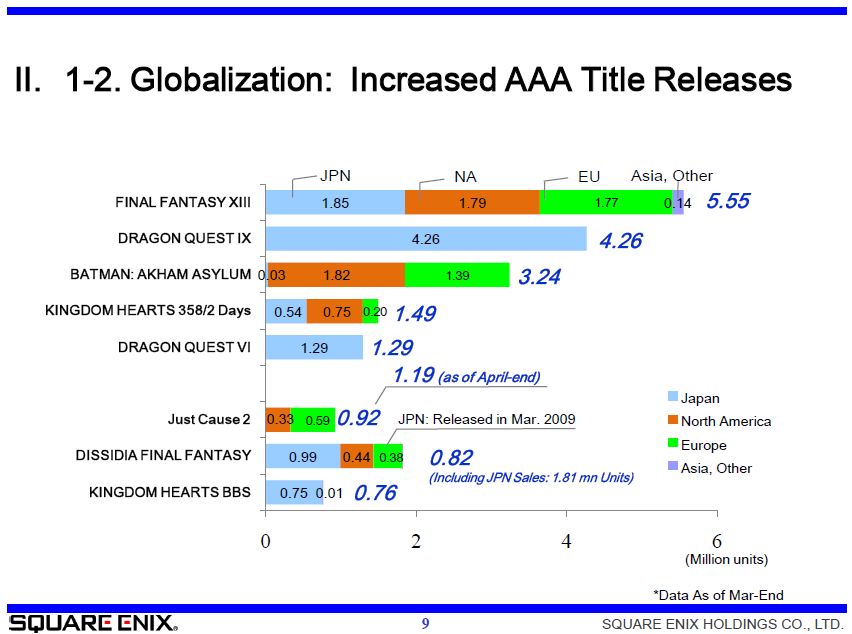 Sales figures of various Square Enix titles