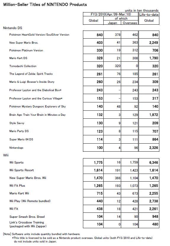 Million-seller titles of Nintendo products