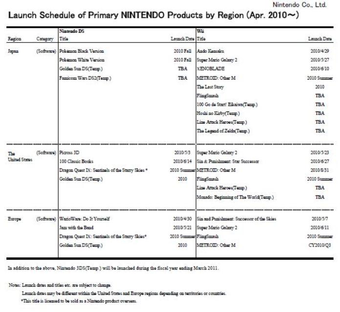 First/third-party Nintendo launch schedule – Zelda Wii as TBA, Kirby listed once again, more