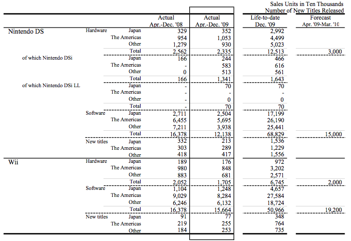 Nintendo Announces Financial Results for the Nine-Months Ending Dec. 31, 2009