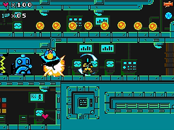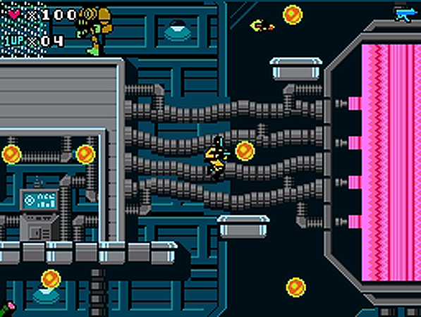 As the ‘80s were drawing to a close, the developers at Capcom began work on a top secret project that aimed to set new standards for the platformer genre. That game was called “Dark Rift”, and it blended the intense shooting action of Section Z™ with the latest innovations in platform jumping from Mega Man. In order to properly fulfill the producer’s vision for Dark Rift (later renamed Dark Void), the hardware engineering team at Capcom was enlisted to design and produce an all-new chipset that would be included in every cartridge, enabling huge numbers of sprites and never-before-seen special effects to be displayed on the aging NES® platform and the PlayChoice-10 NES arcade cabinet.