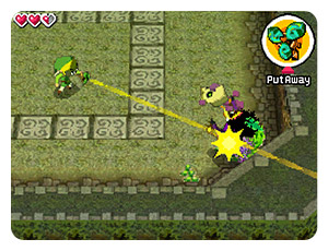 Link has played multiple instruments throughout his journeys such as the Ocarina of Time, Flute, and Wind Waker. But the Legend of Zelda: Spirit Tracks introduces a new one. Players will be required to use the Spirit Pipes in order to bring back the Spirit Tracks. The microphone are touch screen are used together, and as you would expect, you choose notes with the stylus and then blow into the microphone to actually play them. We’ll have more information on the Spirit Pipes in the coming weeks.