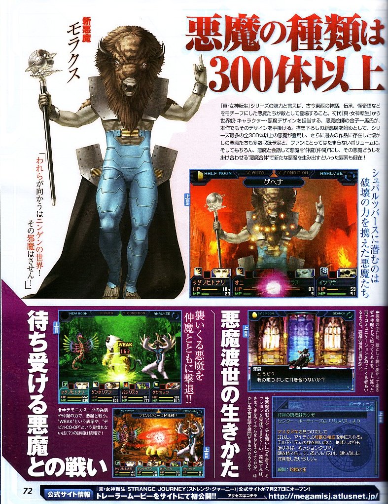 Famitsu has the first details on a brand new Shin Megami Tensei game. According to the magazine, this new entry in the series will be heading to the DS and is called Shin Megami Tensei: Strange Journey. We’ll be updating this post as new information comes in.