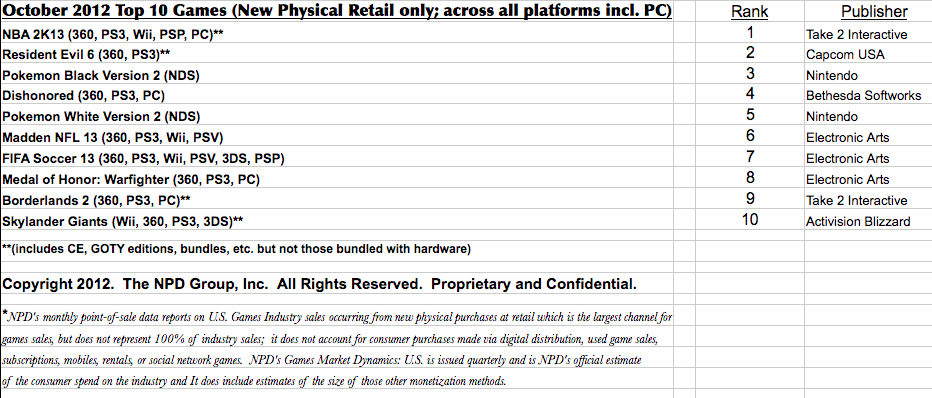 October 2012 NPD: Top 10 best-selling games in the U.S.