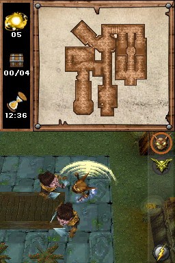 – Game engine runs on top screen, bottom screen is where the story happens + touch screen minigame